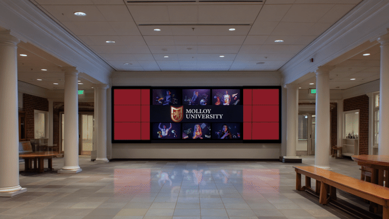 In post-production, our team blended practical footage with digital elements, including 3D animation of the university’s “U”mark and custom lensing effects, ensuring the final content was optimized for every channel from mobile to immersive LED environments. The result was a cohesive, future-forward visual campaign that affirmed Molloy University as a vibrant, inclusive hub of innovation and learning.